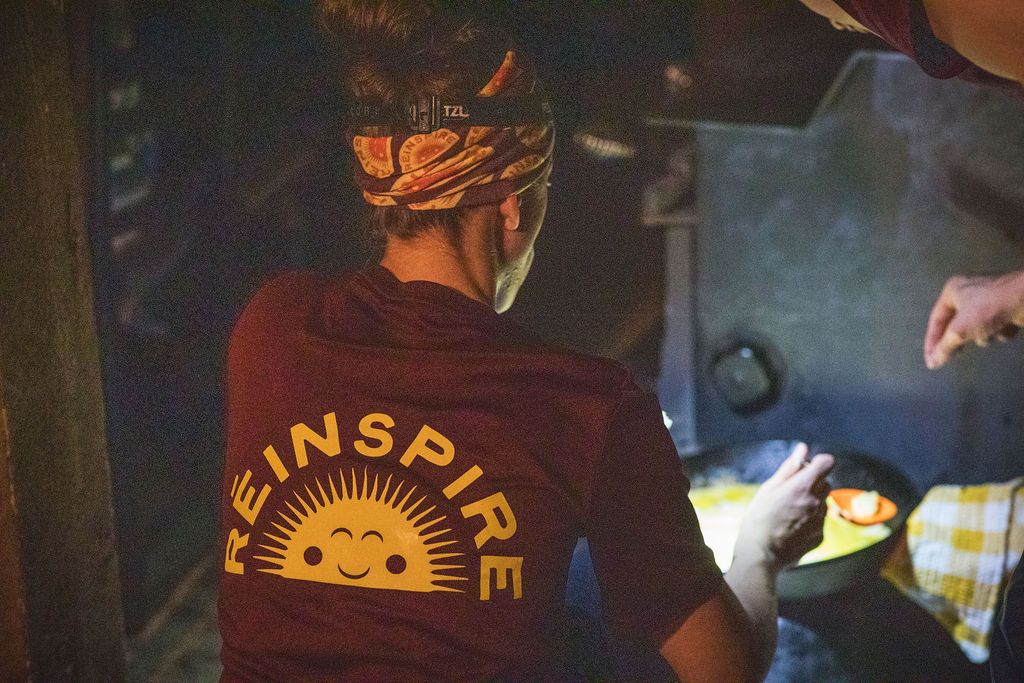 Ce qui m’a le plus impressionnée, c’est l’esprit d’entraide spontané qui a émergé chez les jeunes dans cette situation. Installée autour du feu de cuisson du poulet, mon équipe de jeunes s’est réparti des tâches non prévues : l’une communiquait à l’équipe à l’intérieur du refuge nos besoins au talkie-walkie, un autre faisait l’aller-retour avec la viande cuite, une autre revenait avec les aliments à faire cuire, pendant qu’un jeune m’aidait à gérer la cuisson sur le feu. Chacun trouvait sa place dans l’action et c’était beau à voir !