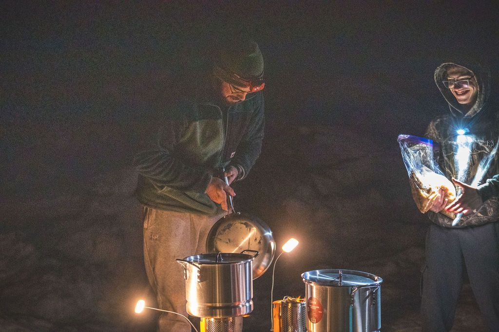 En expédition, il y a souvent des situations inattendues qui surviennent ! Il faut savoir faire preuve de souplesse et de réactivité, s’adapter rapidement et trouver des solutions. À titre d'exemple, un problème avec le brûleur nous a forcés à allumer un feu de cuisson à l’extérieur pour le souper de notre première soirée.
